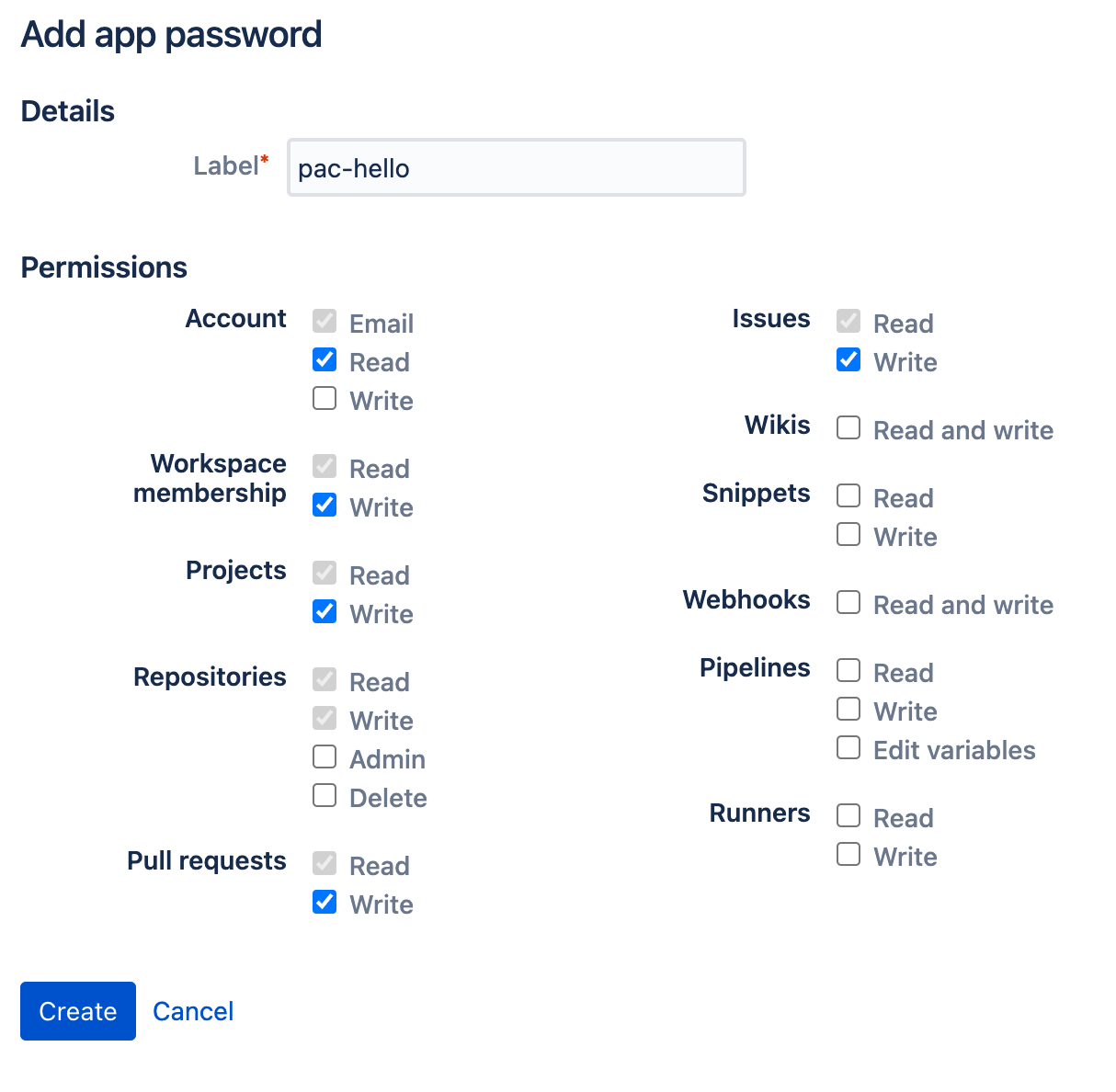 โน ๏ธYou now need to create a Bitbucket Cloud app password, please checkout the docs at https://is.gd/fqMHiJ for the required permissions